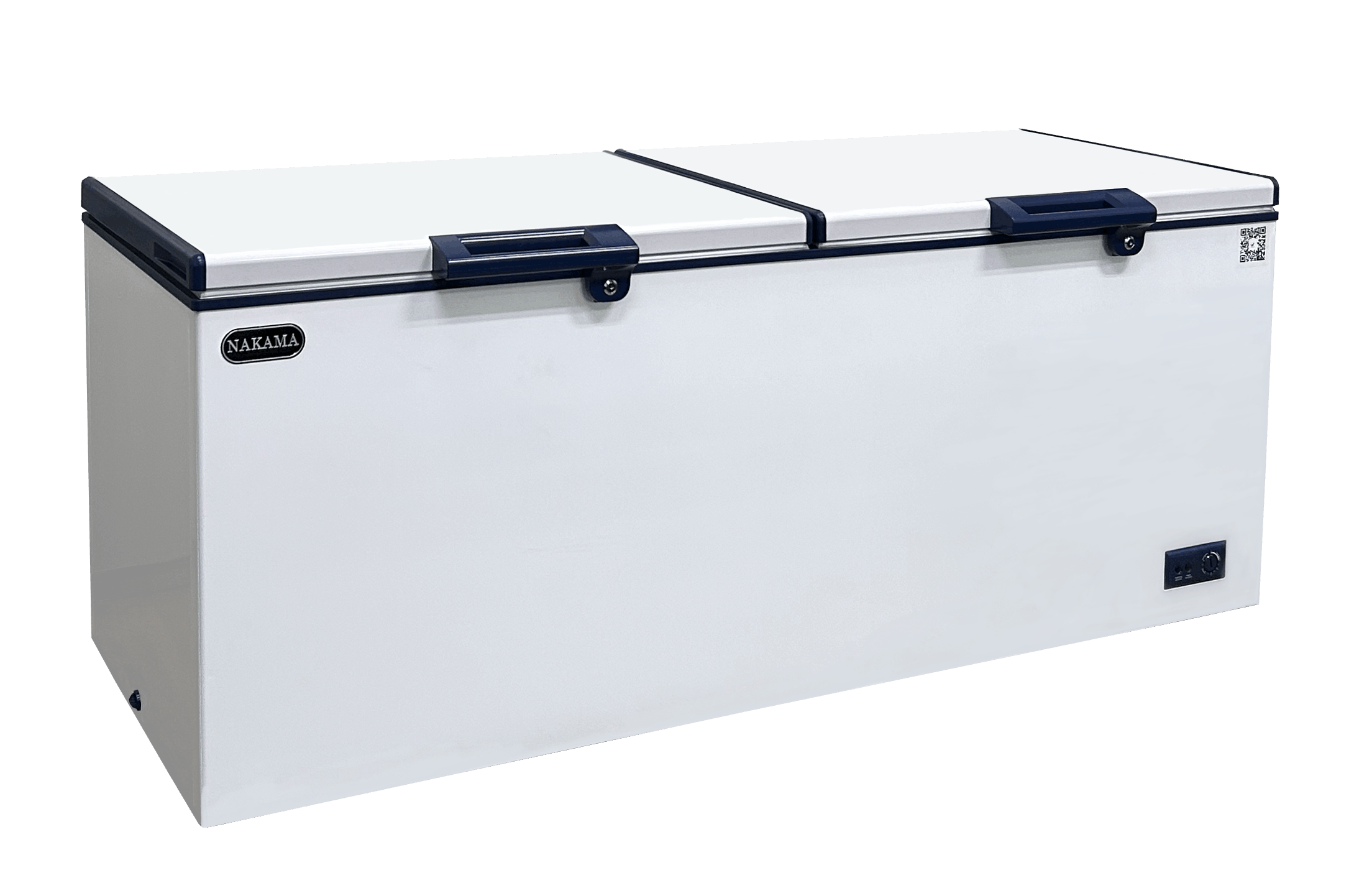 | Twin doors top open chest freezer, w/o glass doors, c/w 1 basket & compressor cooling fan. Mechanical thermostat & twin temperature control. Build in Condenser. Direct cold system. White coating inner. Temp < -25°C. Equipped with door frame heater. |